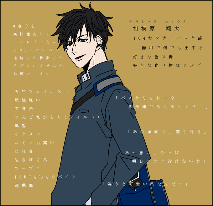 百餅あめ En Twitter できたわよ 自分を男子高校生化してフォロワーさんとホモしたいので性格とか特徴とかくださいませんかお願いします